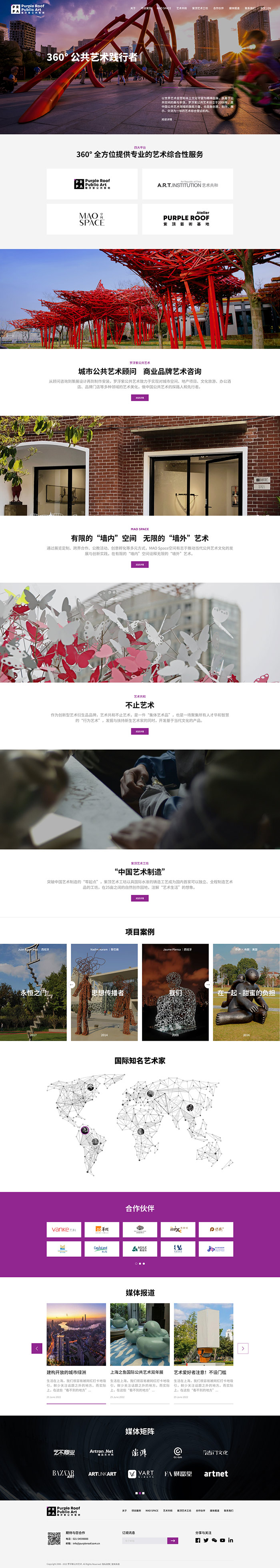 以世界藝術(shù)自覺和本土文化守望為精神血脈,執(zhí)著于公共空間的美與豐饒,羅浮紫公共藝術(shù)(Purple Roof Public Art)創(chuàng)立于2006年,是中國公共藝術(shù)領(lǐng)域的旗艦力量,也是融創(chuàng)意咨詢、展覽策劃、制作交流等相關(guān)產(chǎn)業(yè)為一體的藝術(shù)綜合營運(yùn)機(jī)構(gòu)。現(xiàn)已建構(gòu)由公共藝術(shù)項(xiàng)目策劃、非營利藝術(shù)空間MAO SPACE、自主衍生品牌A.R.T.INSTITUTION藝術(shù)共和、紫頂藝術(shù)基地四大綜合性藝術(shù)服務(wù)平臺(tái)體系,全面實(shí)現(xiàn)成為城市公共藝術(shù)的360°踐行者。